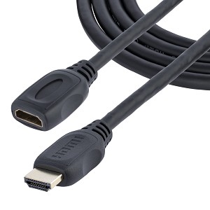 The HDEXT2M HDMI® extension cable (2m) features an HDMI 19-pin (male) connector on one end and an HDMI 19-pin (female) connector on the other, providing an extra 2-meter connection distance between your HDMI-enabled devices.