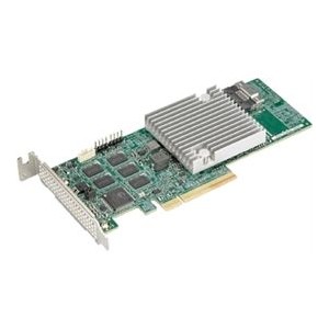 The Supermicro MegaRAID Low Profile AOC-S3908L-H8iR features 8 internal SAS connectors for high-performance storage connectivity. This RAID card built on the Broadcom SAS IC technology and proven MegaRAID technology. It addresses the growing demand for increased data throughput and scalability requirements across the enterprise-class server platforms. With high performance RAID architecture, including hardware RAID 5 and 6. It delivers cost-effective storage solutions using SATA drives and maximum performance and reliability with SAS drives.