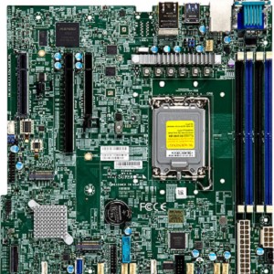 Built with the Intel PCH C266 chipset, the X13SCH-F supports an Intel Xeon 6300 series / E-2400 series processor and up to 128GB DDR5 ECC UDIMM memory in four memory slots. It features one PCIe 5.0, two PCIe 4.0 slots, SATA 3.0 connections via SlimSAS, two M.2 slots in the 2280/22110 form factors, Intel I210 Gigabit Ethernet and a Trusted Platform Module (TPM) header.